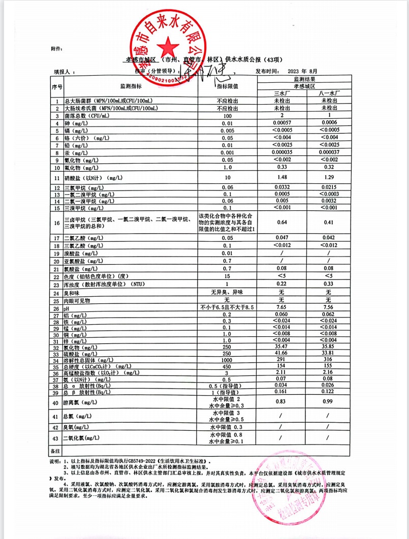 2023年8月水質(zhì)報告