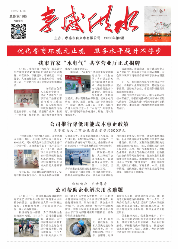 來(lái)源:孝感自來(lái)水 發(fā)布時(shí)間:2024/5/7 15:38:29