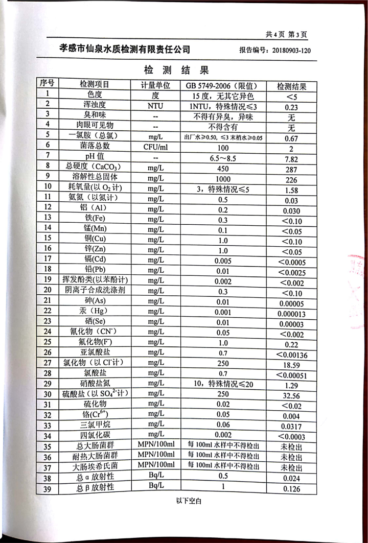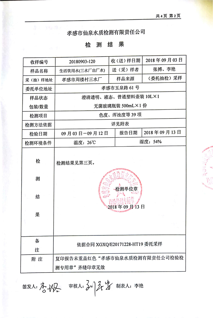 2018年9月水質(zhì)報告