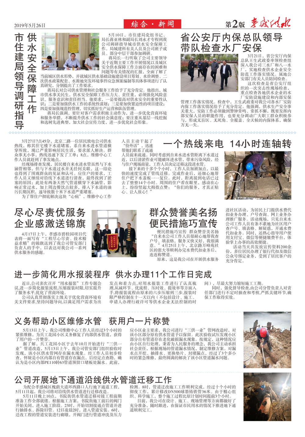 來源:孝感自來水 發(fā)布時間:2019/5/27 14:34:00