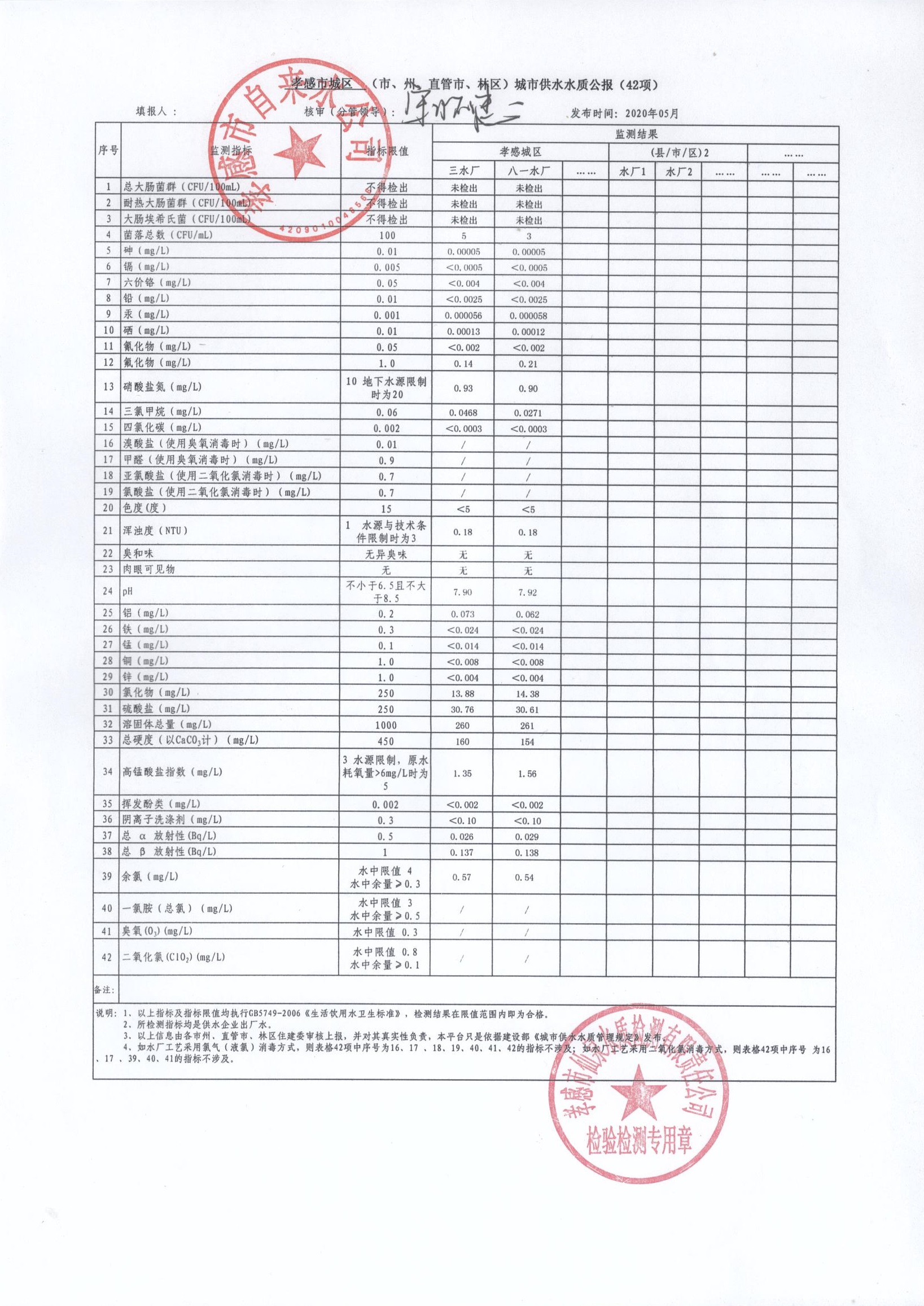2020年5月水質(zhì)報告